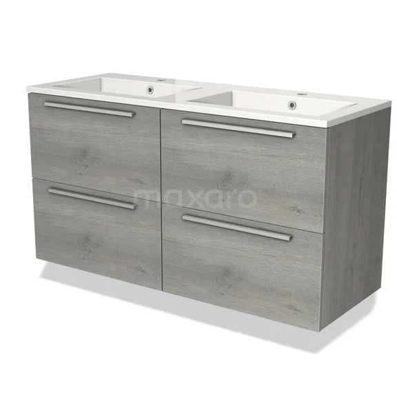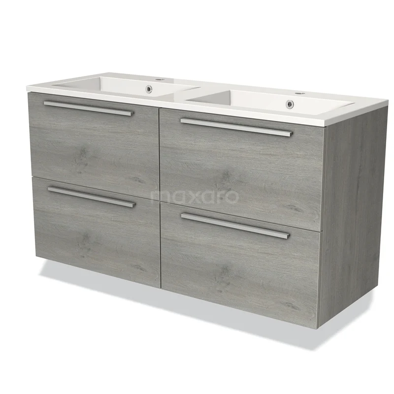 Modulo Waschtische | 120 cm Graue Eiche Flach front Mineralguss 4 Schubladen
