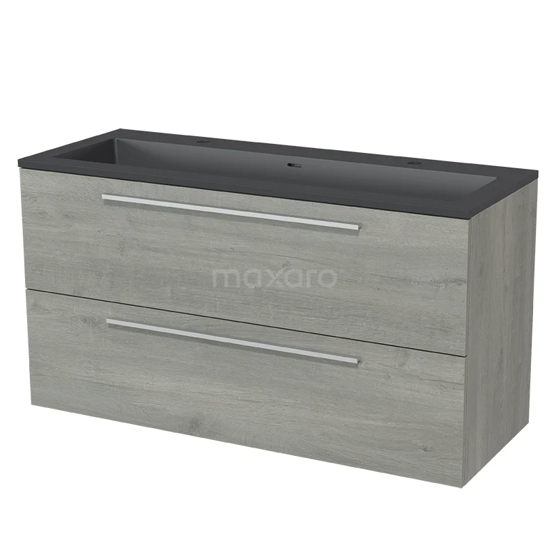 Modulo Waschtische | 120 cm Graue Eiche Flach front Quarz 2 übereinanderliegende Schubladen