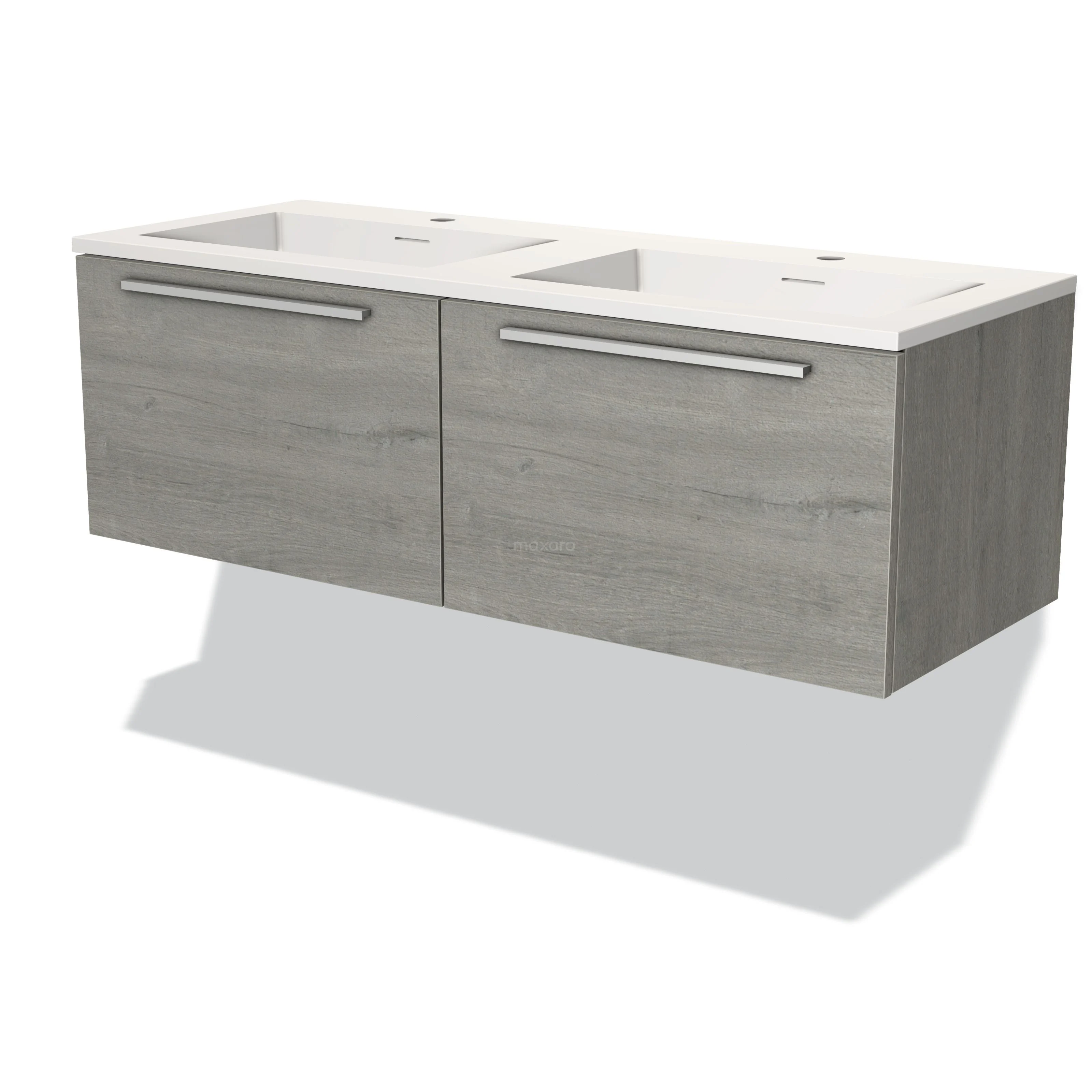 Modulo Waschtische | 120 cm Graue Eiche Flach front Solid Surface 2 nebeneinanderliegende Schubladen