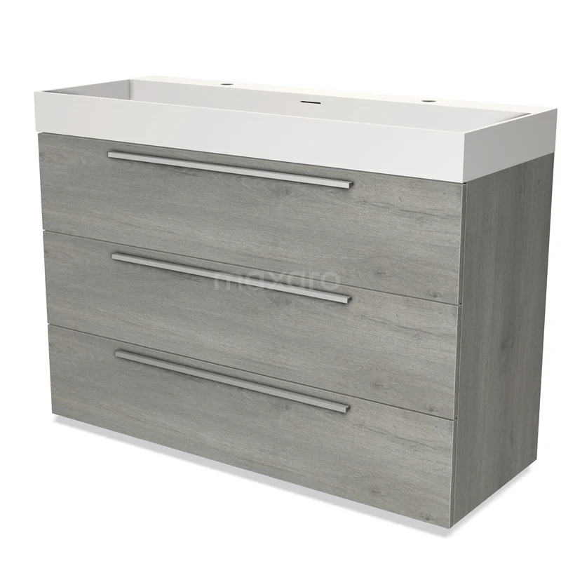 Modulo Waschtische | 120 cm Graue Eiche Flach front Solid Surface 3 Schubladen