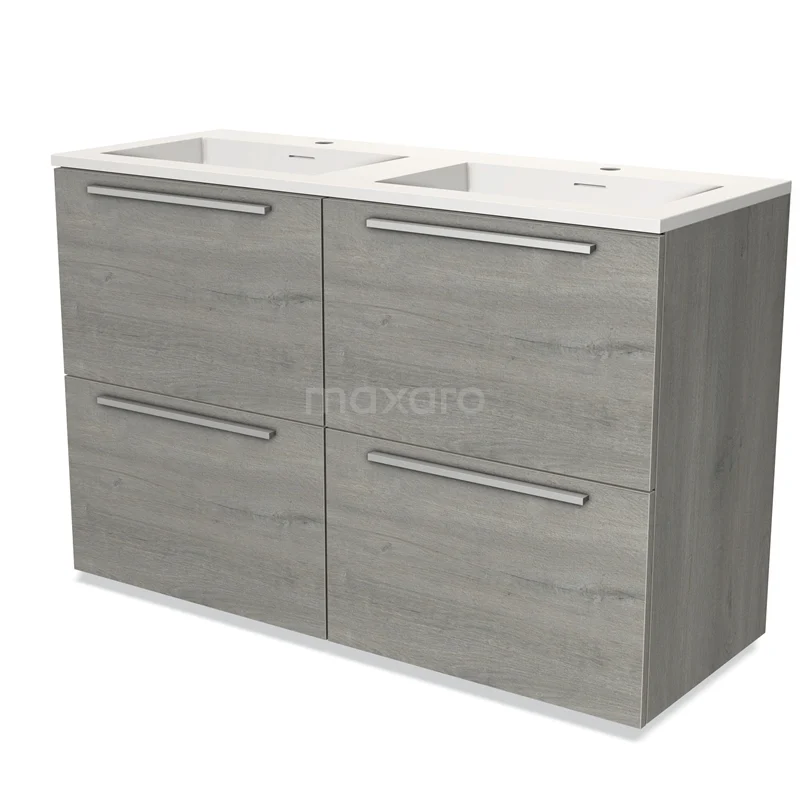 Modulo Waschtische | 120 cm Graue Eiche Flach front Solid Surface 4 hohe Schubladen