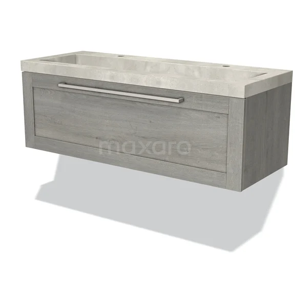 Modulo Waschtische | 120 cm Graue Eiche Rahmen front Beton 1 Schublade