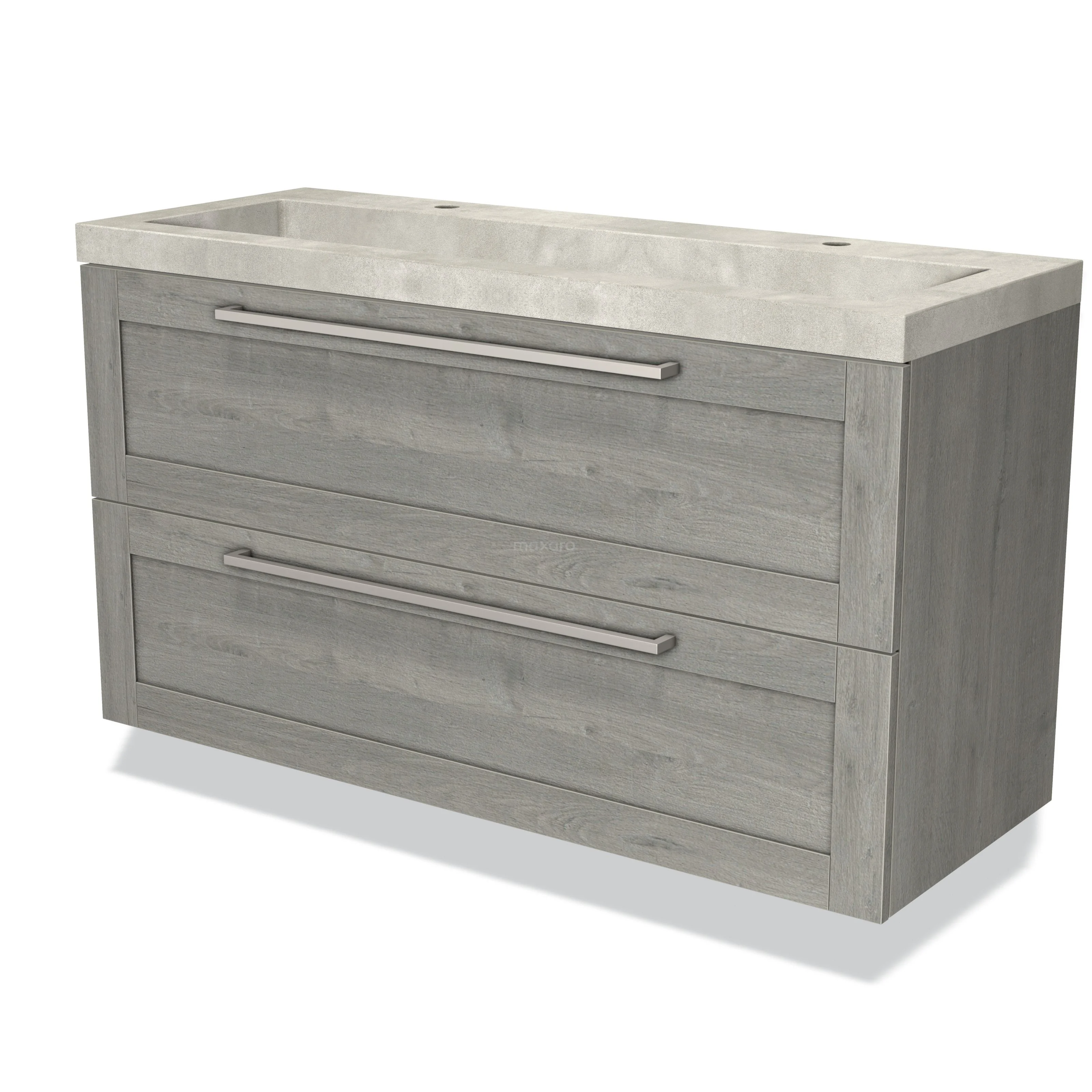 Modulo Waschtische | 120 cm Graue Eiche Rahmen front Beton 2 übereinanderliegende Schubladen
