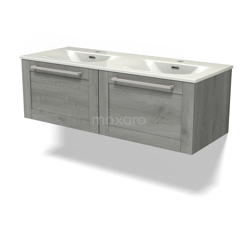 Modulo Waschtische | 120 cm Graue Eiche Rahmen front Keramik 2 nebeneinanderliegende Schubladen