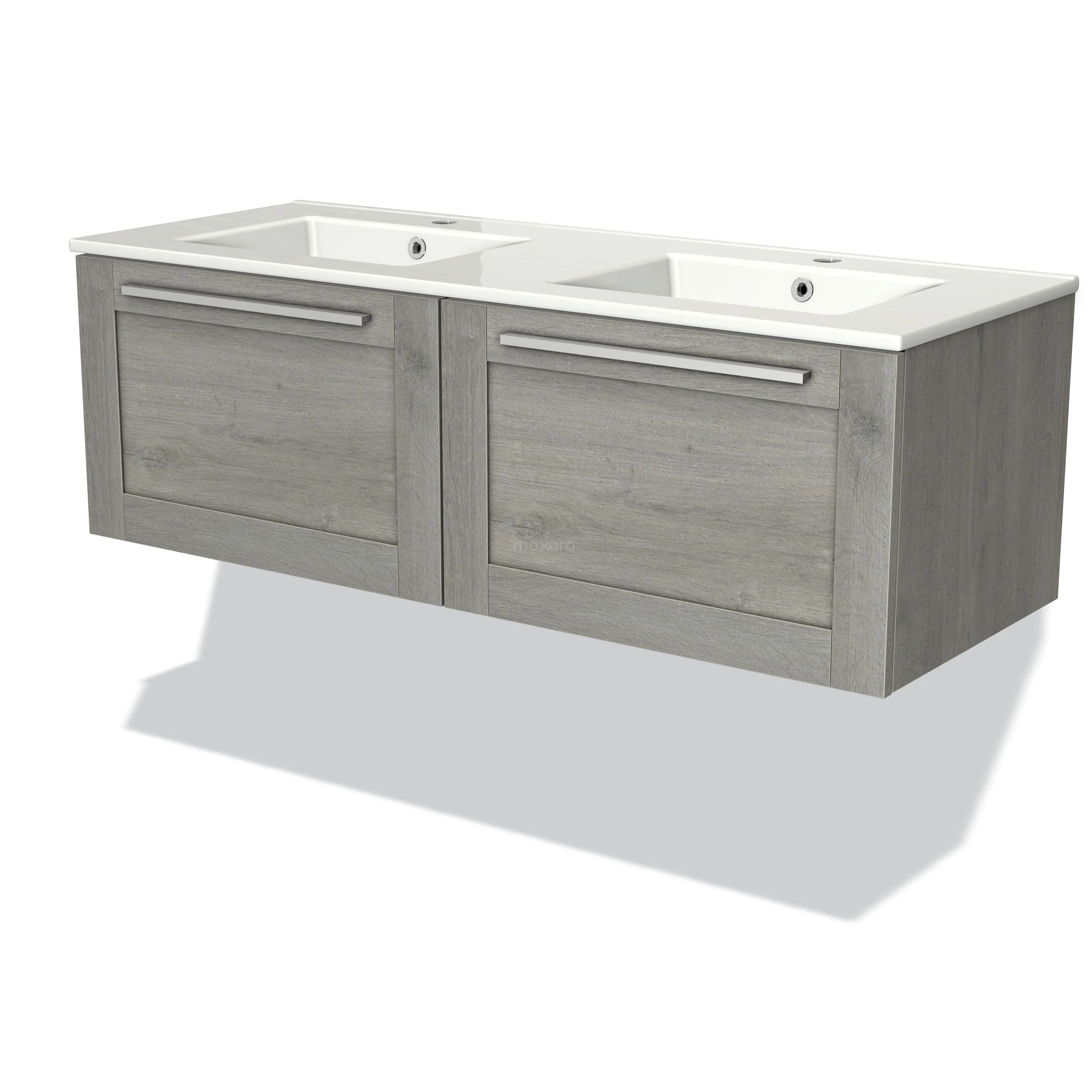 Modulo Waschtische | 120 cm Graue Eiche Rahmen front Keramik 2 nebeneinanderliegende Schubladen