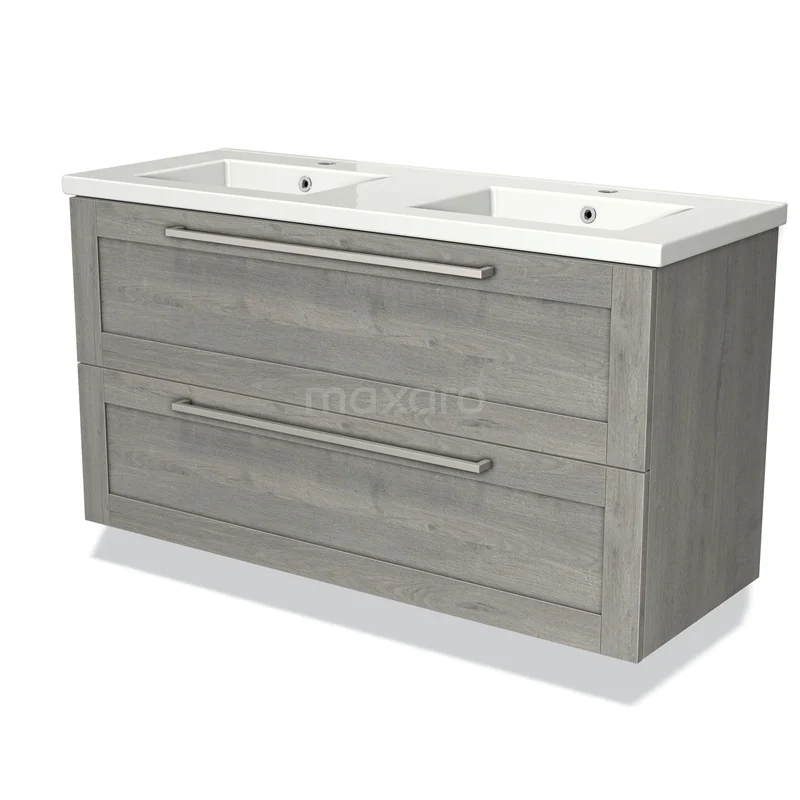 Modulo Waschtische | 120 cm Graue Eiche Rahmen front Keramik 2 übereinanderliegende Schubladen