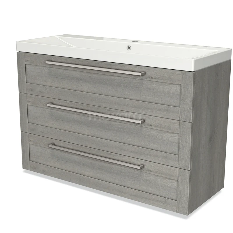 Modulo Waschtische | 120 cm Graue Eiche Rahmen front Keramik 3 Schubladen