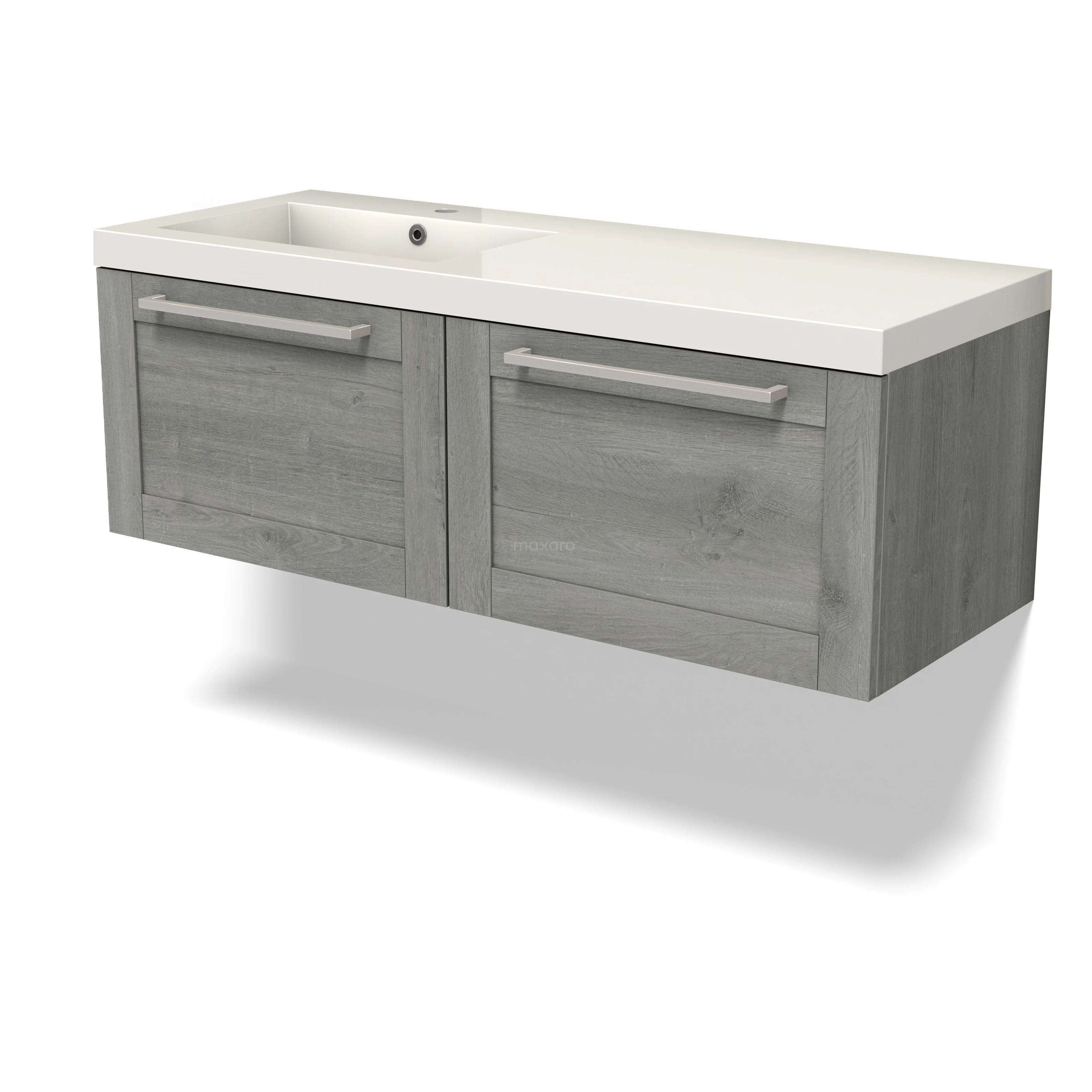 Modulo Waschtische | 120 cm Graue Eiche Rahmen front Mineralguss 2 nebeneinanderliegende Schubladen
