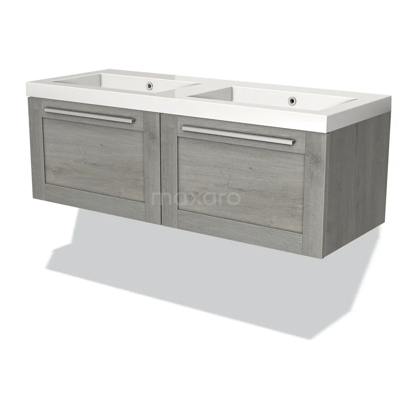 Modulo Waschtische | 120 cm Graue Eiche Rahmen front Mineralguss 2 nebeneinanderliegende Schubladen