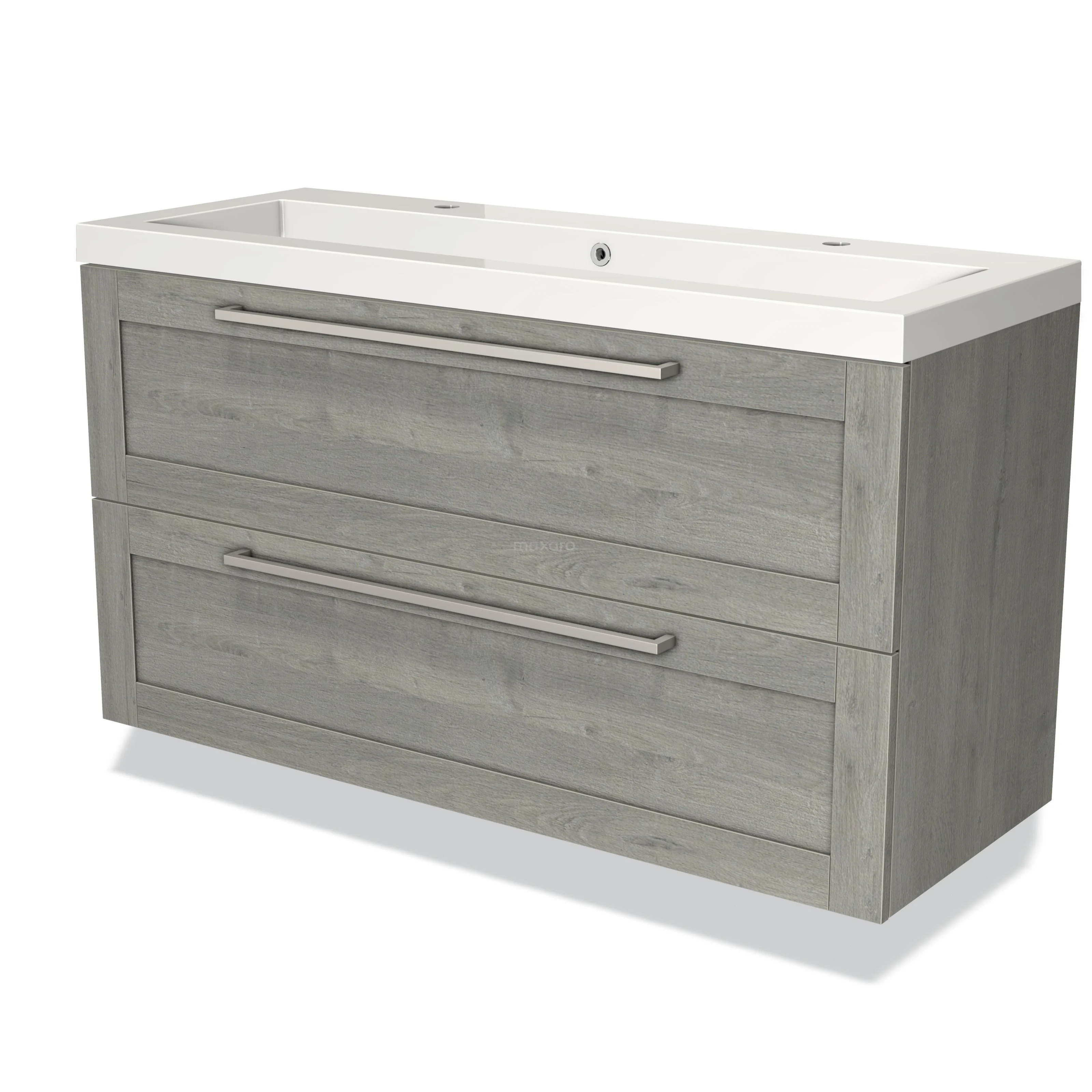 Modulo Waschtische | 120 cm Graue Eiche Rahmen front Mineralguss 2 übereinanderliegende Schubladen