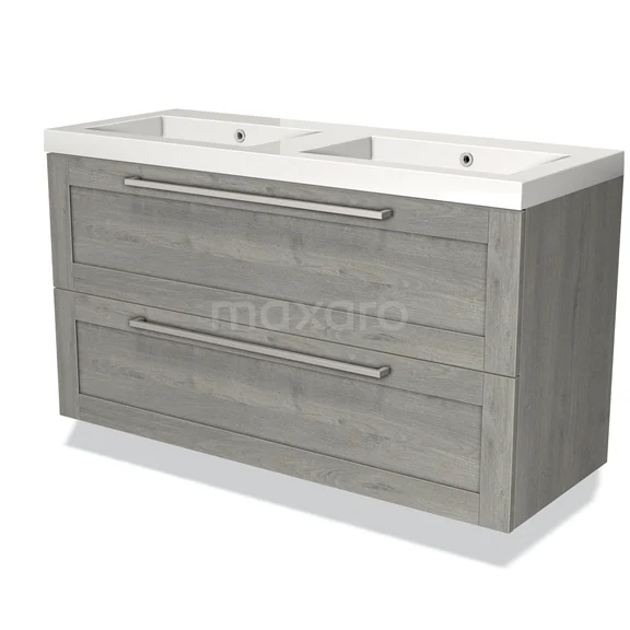 Modulo Waschtische | 120 cm Graue Eiche Rahmen front Mineralguss 2 übereinanderliegende Schubladen