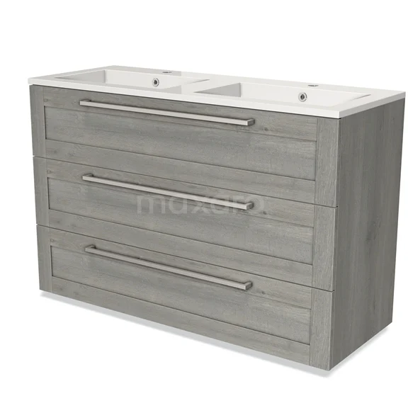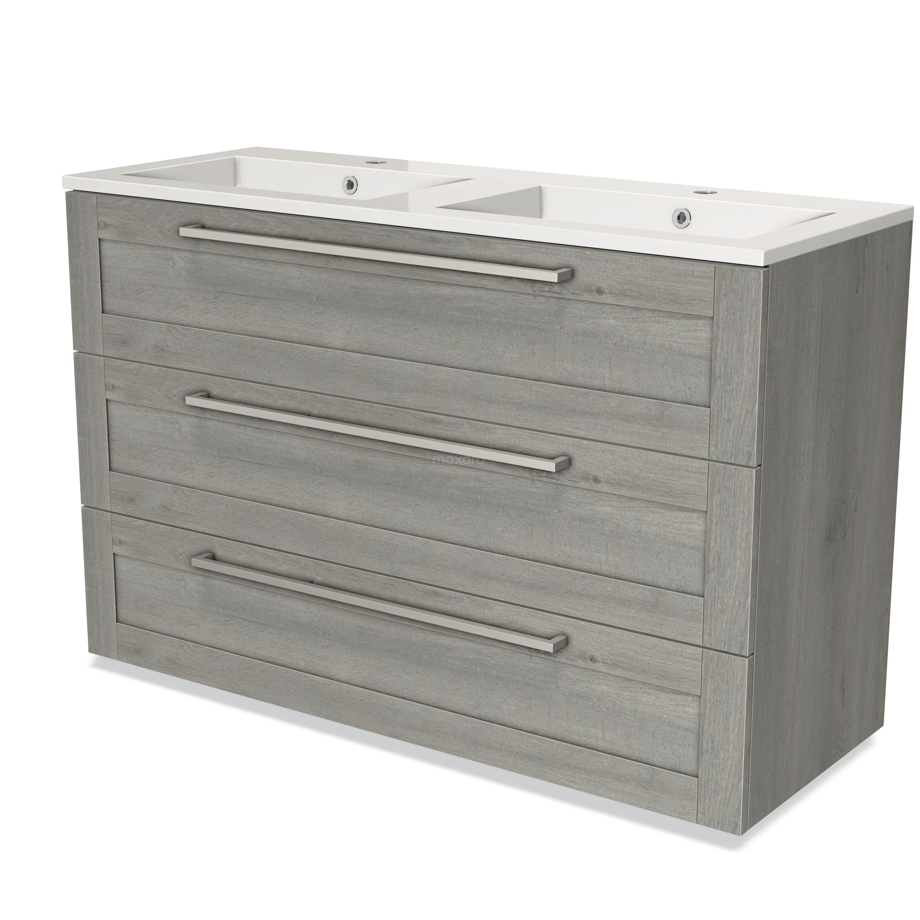 Modulo Waschtische | 120 cm Graue Eiche Rahmen front Mineralguss 3 Schubladen