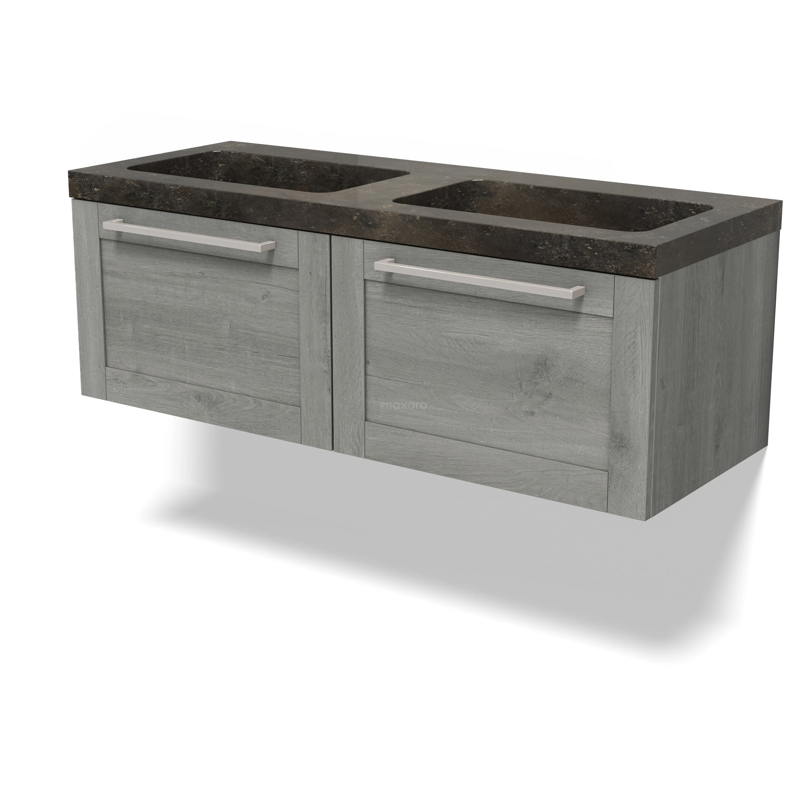 Modulo Waschtische | 120 cm Graue Eiche Rahmen front Naturstein 2 nebeneinanderliegende Schubladen