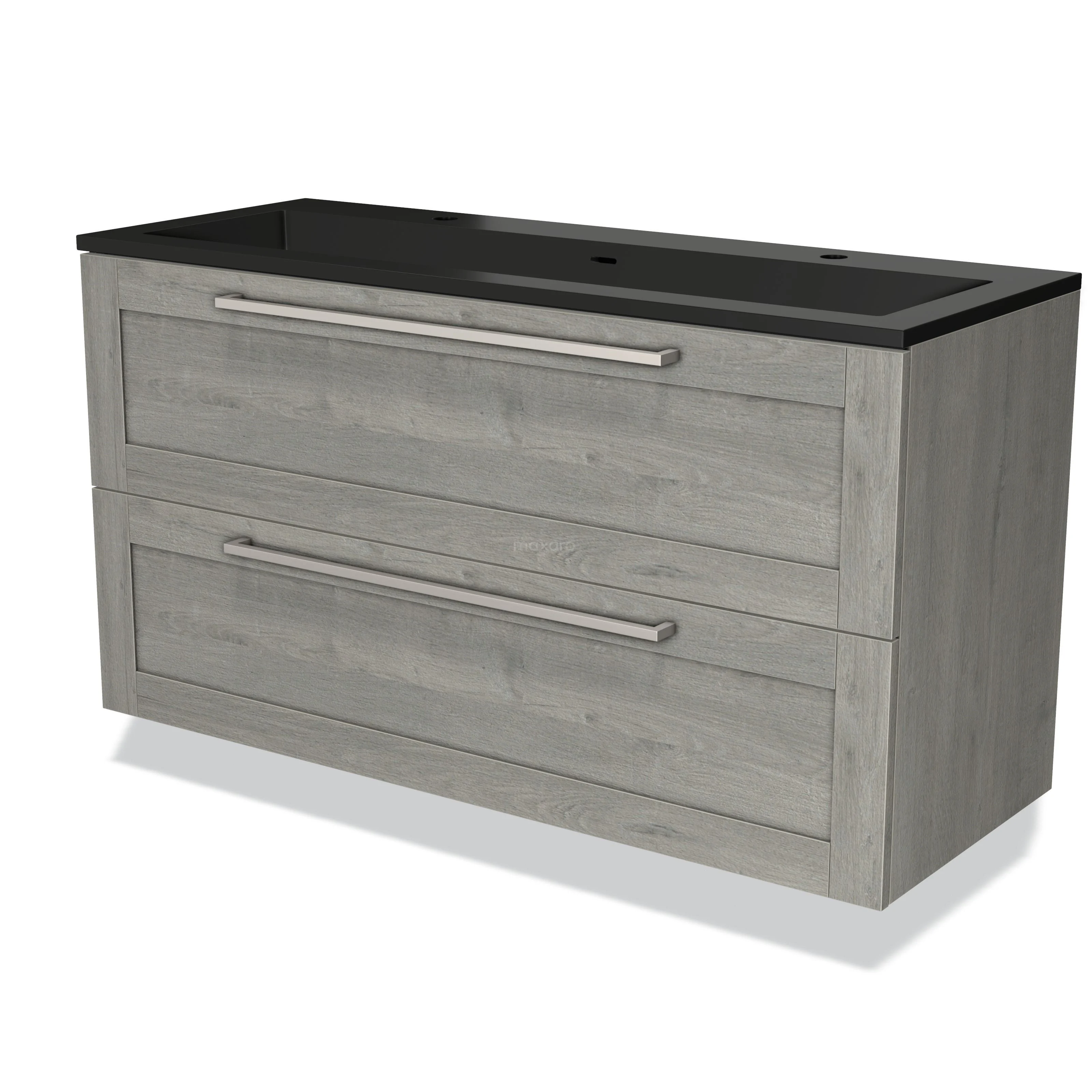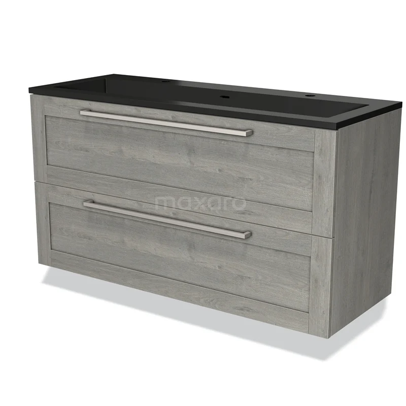 Modulo Waschtische | 120 cm Graue Eiche Rahmen front Quarz 2 übereinanderliegende Schubladen