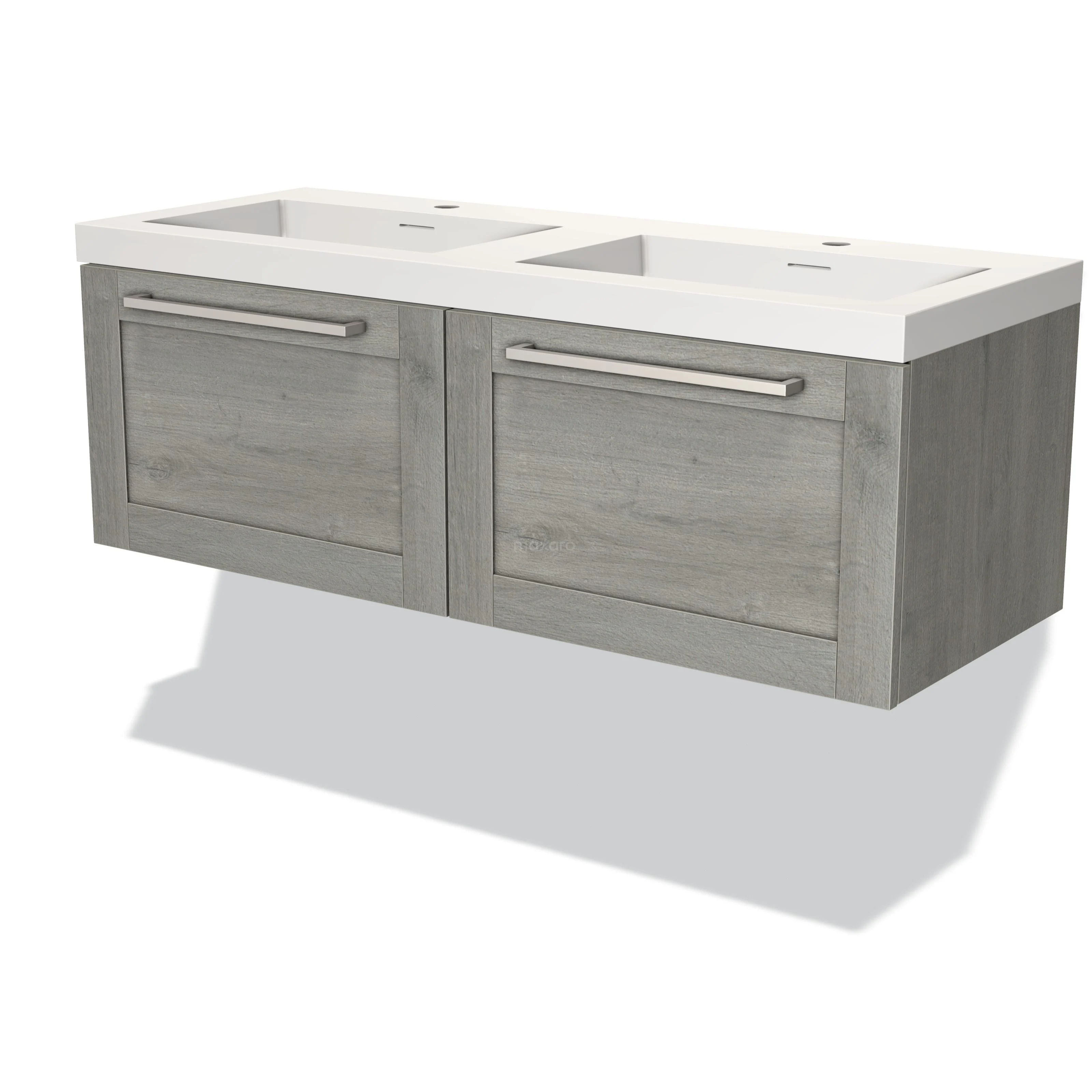 Modulo Waschtische | 120 cm Graue Eiche Rahmen front Solid Surface 2 nebeneinanderliegende Schubladen