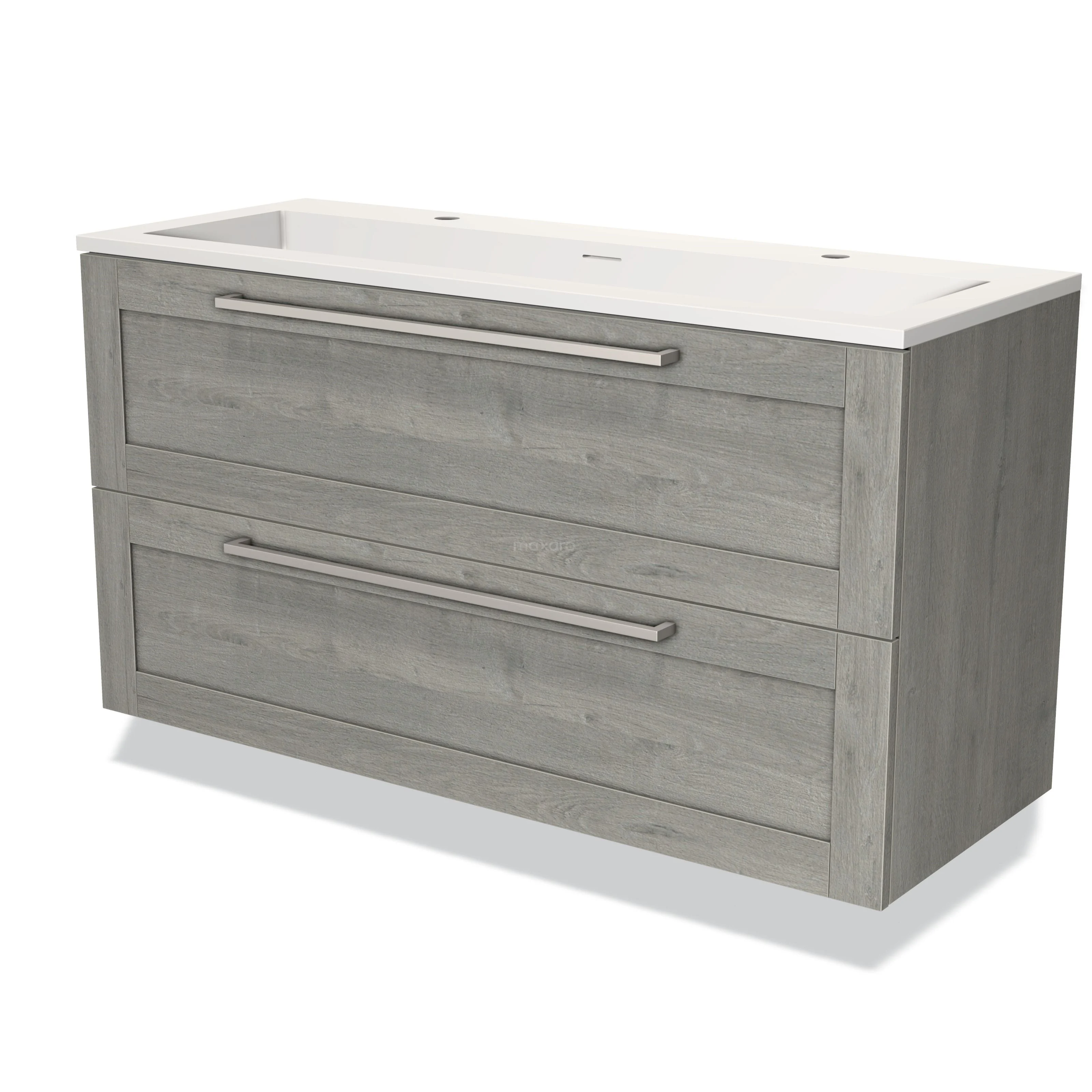 Modulo Waschtische | 120 cm Graue Eiche Rahmen front Solid Surface 2 übereinanderliegende Schubladen