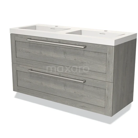 Modulo Waschtische | 120 cm Graue Eiche Rahmen front Solid Surface 2 übereinanderliegende Schubladen
