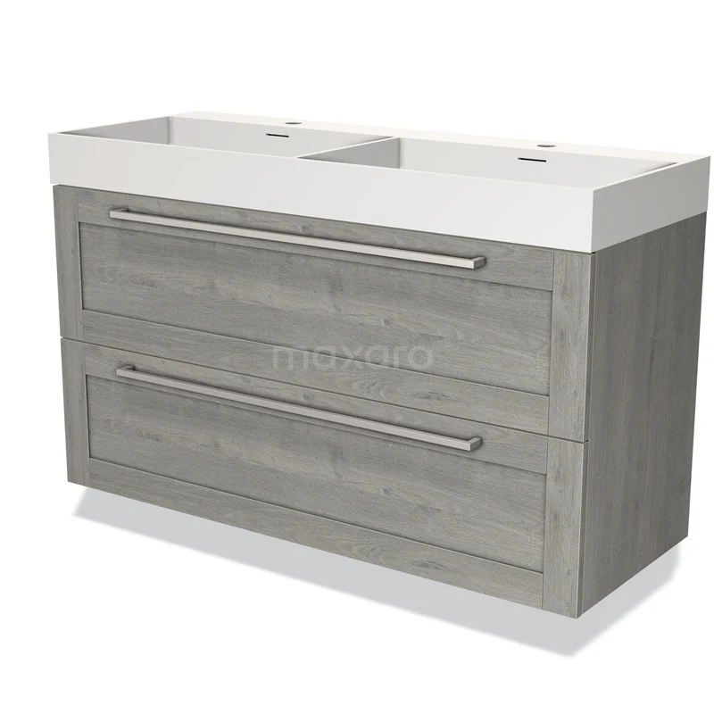 Modulo Waschtische | 120 cm Graue Eiche Rahmen front Solid Surface 2 übereinanderliegende Schubladen