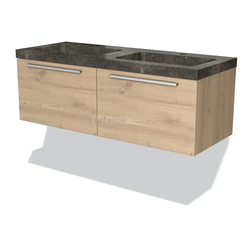 Modulo Waschtische | 120 cm Hellbraune Eiche Flach front Naturstein 2 nebeneinanderliegende Schubladen