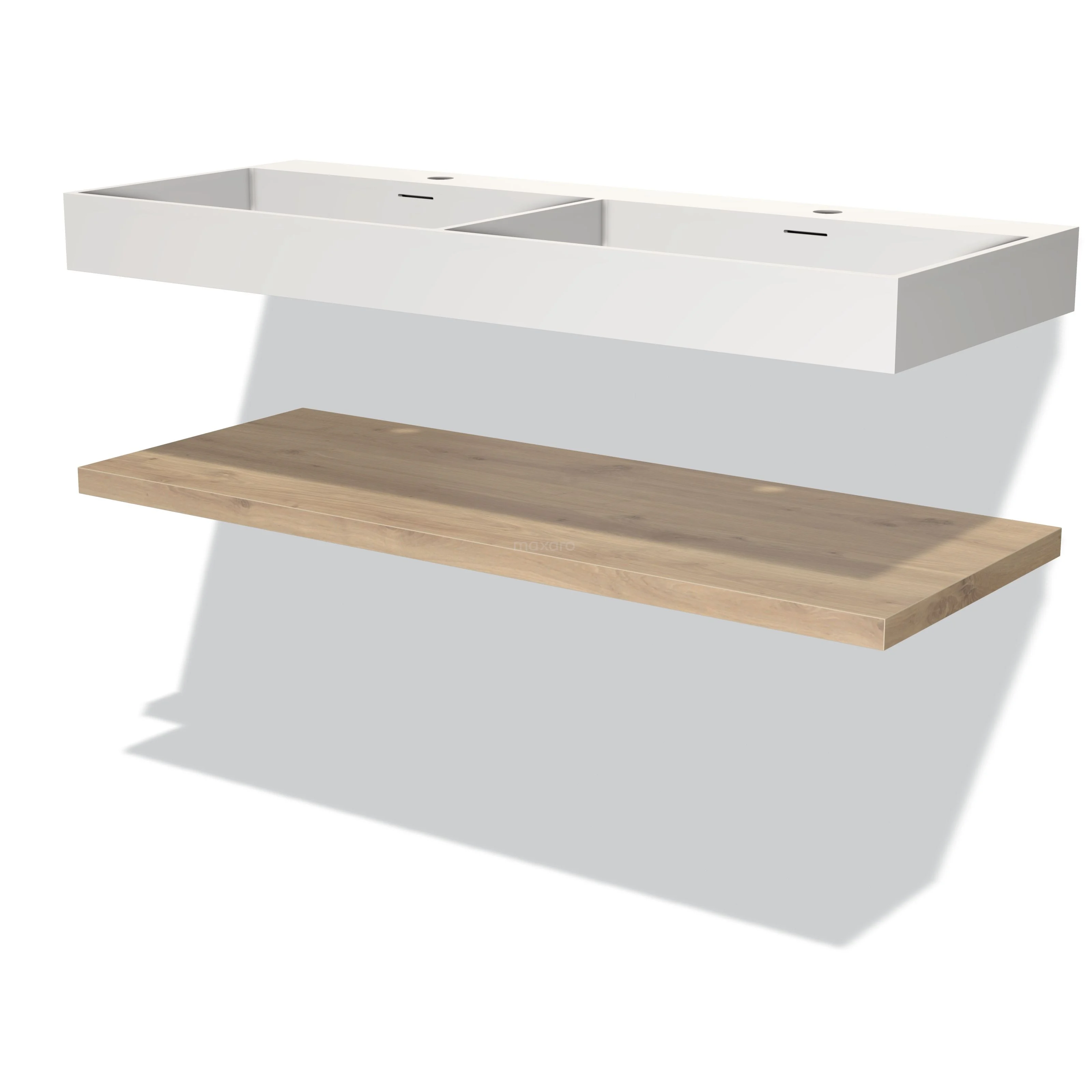 Modulo Waschtische | 120 cm Hellbraune Eiche front Solid Surface Waschbecken mit Platte
