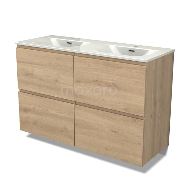 Modulo Waschtische | 120 cm Hellbraune Eiche Grifflos front Keramik 4 hohe Schubladen