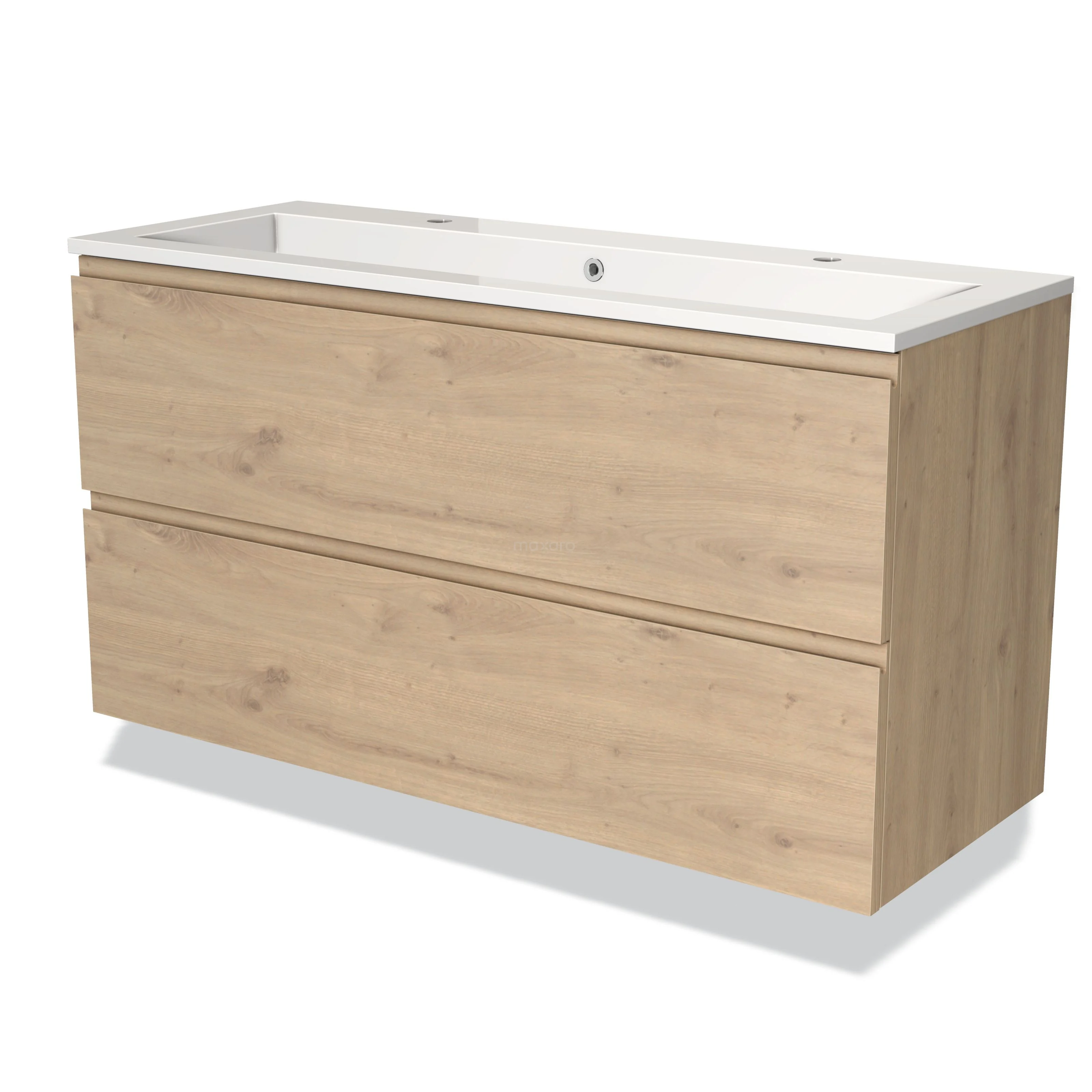 Modulo Waschtische | 120 cm Hellbraune Eiche Grifflos front Mineralguss 2 übereinanderliegende Schubladen