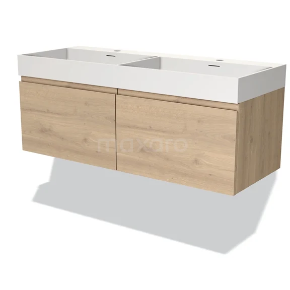 Modulo Waschtische | 120 cm Hellbraune Eiche Grifflos front Solid Surface 2 nebeneinanderliegende Schubladen