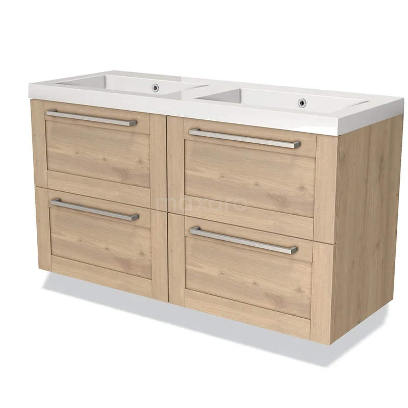 Modulo Waschtische | 120 cm Hellbraune Eiche Rahmen front Mineralguss 4 Schubladen