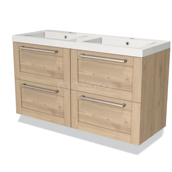 Modulo Waschtische | 120 cm Hellbraune Eiche Rahmen front Mineralguss 4 Schubladen
