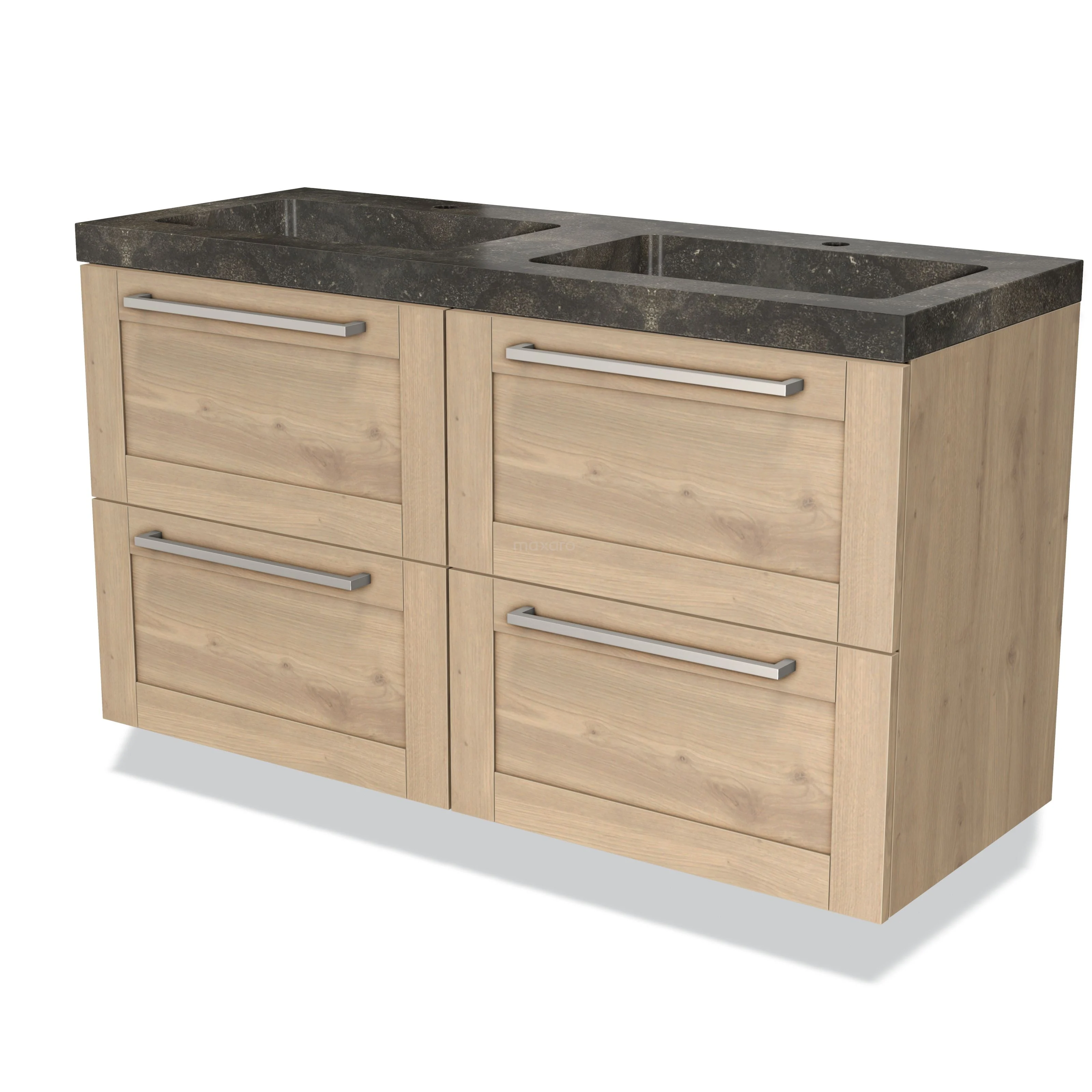 Modulo Waschtische | 120 cm Hellbraune Eiche Rahmen front Naturstein 4 Schubladen