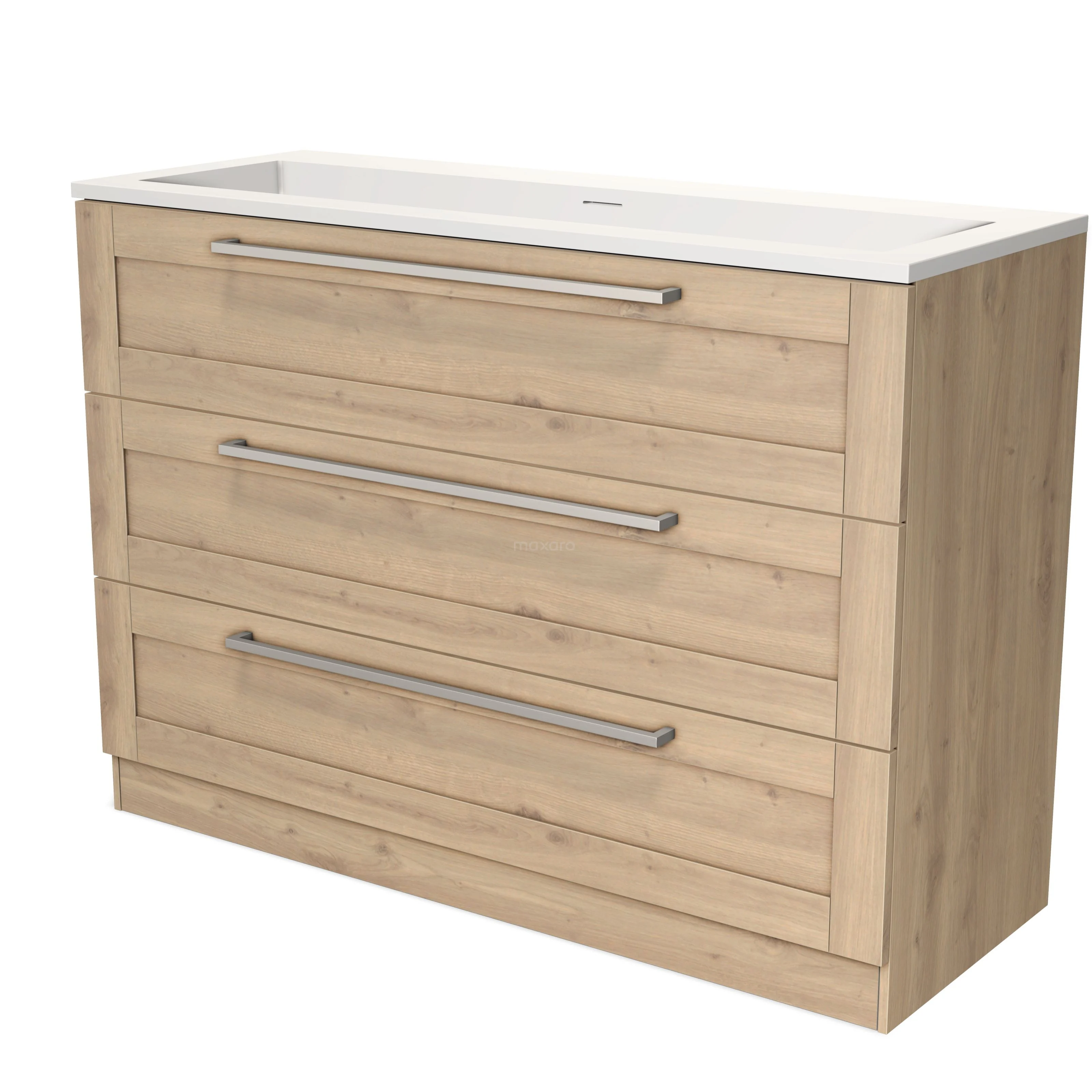 Modulo Waschtische | 120 cm Hellbraune Eiche Rahmen front Solid Surface 3 stehende Schubladen