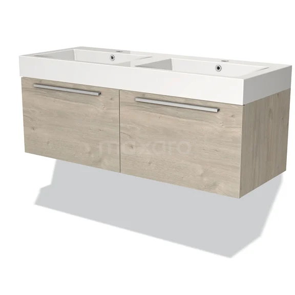 Modulo Waschtische | 120 cm Hellgraue Eiche Flach front Mineralguss 2 nebeneinanderliegende Schubladen