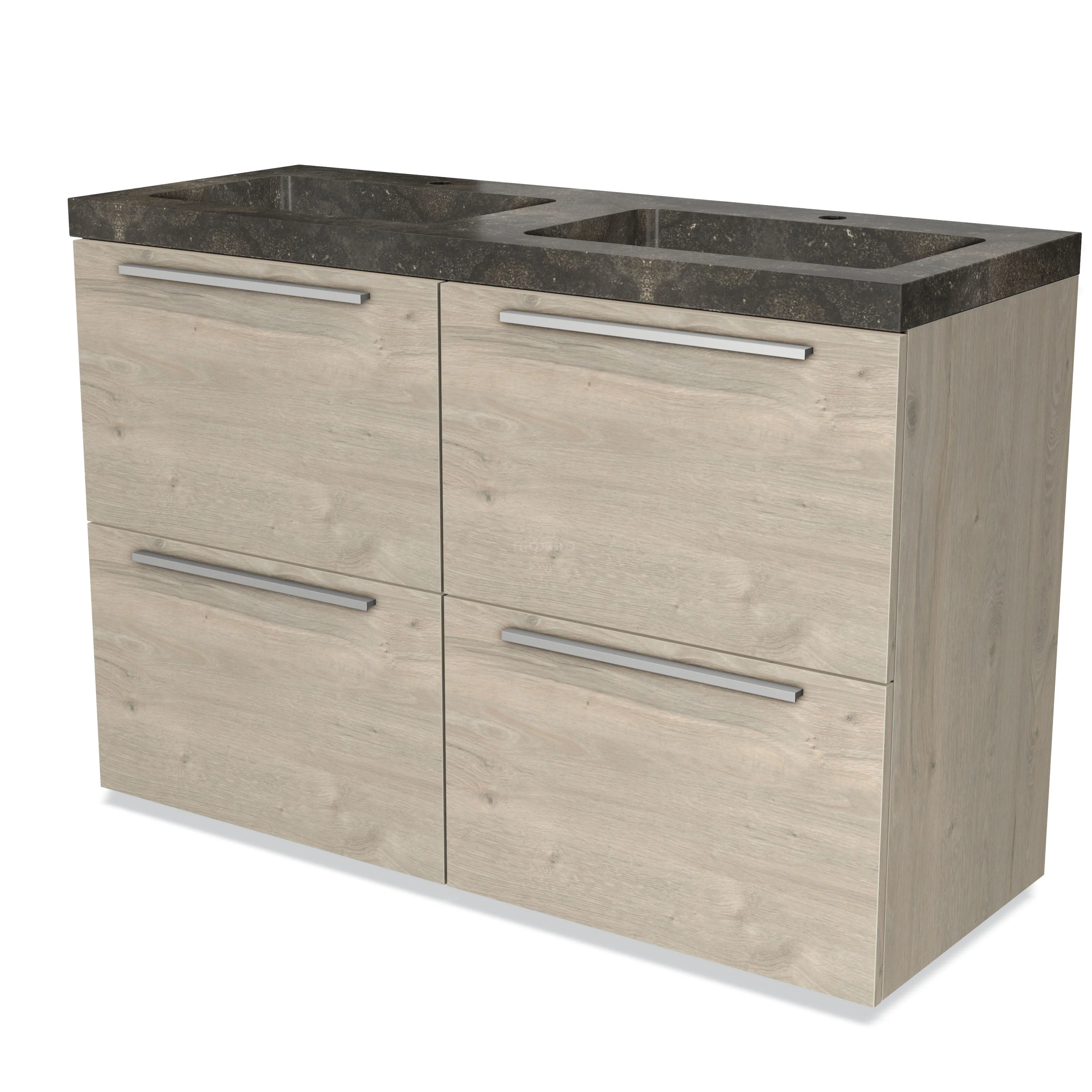 Modulo Waschtische | 120 cm Hellgraue Eiche Flach front Naturstein 4 hohe Schubladen