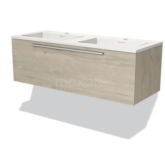 Modulo Waschtische | 120 cm Hellgraue Eiche Flach front Solid Surface 1 Schublade