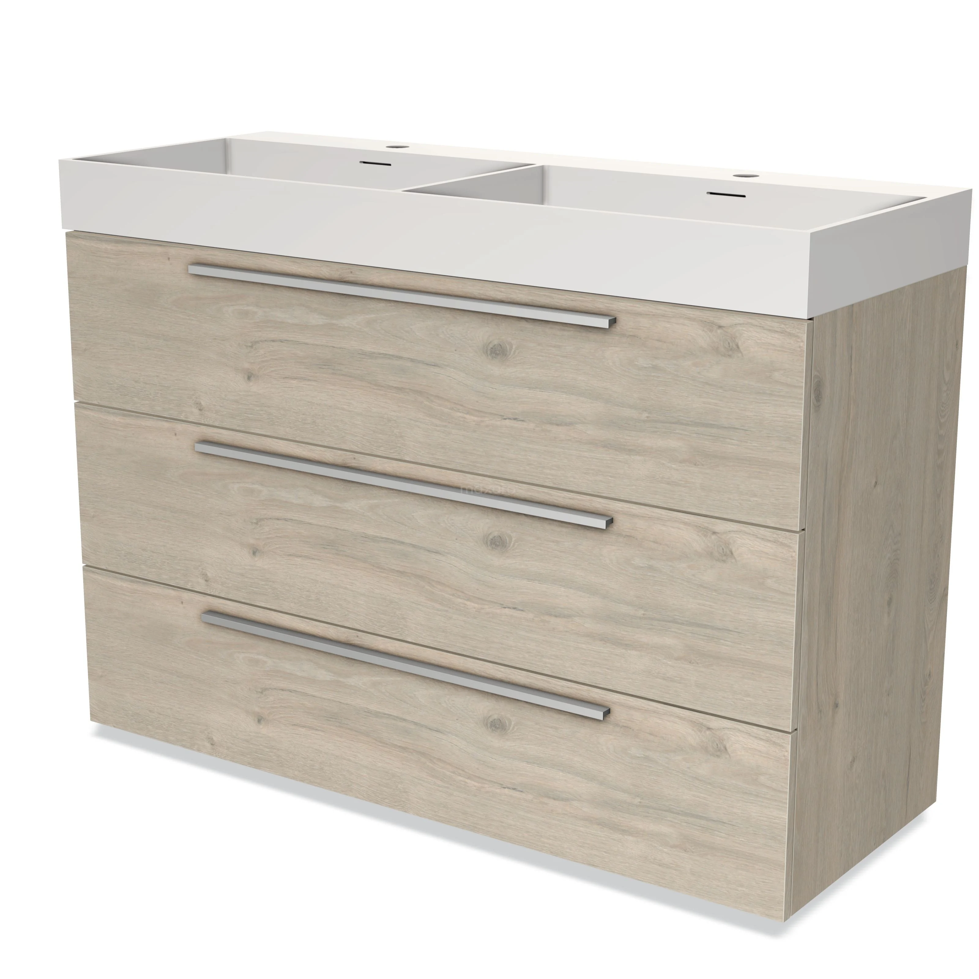 Modulo Waschtische | 120 cm Hellgraue Eiche Flach front Solid Surface 3 Schubladen