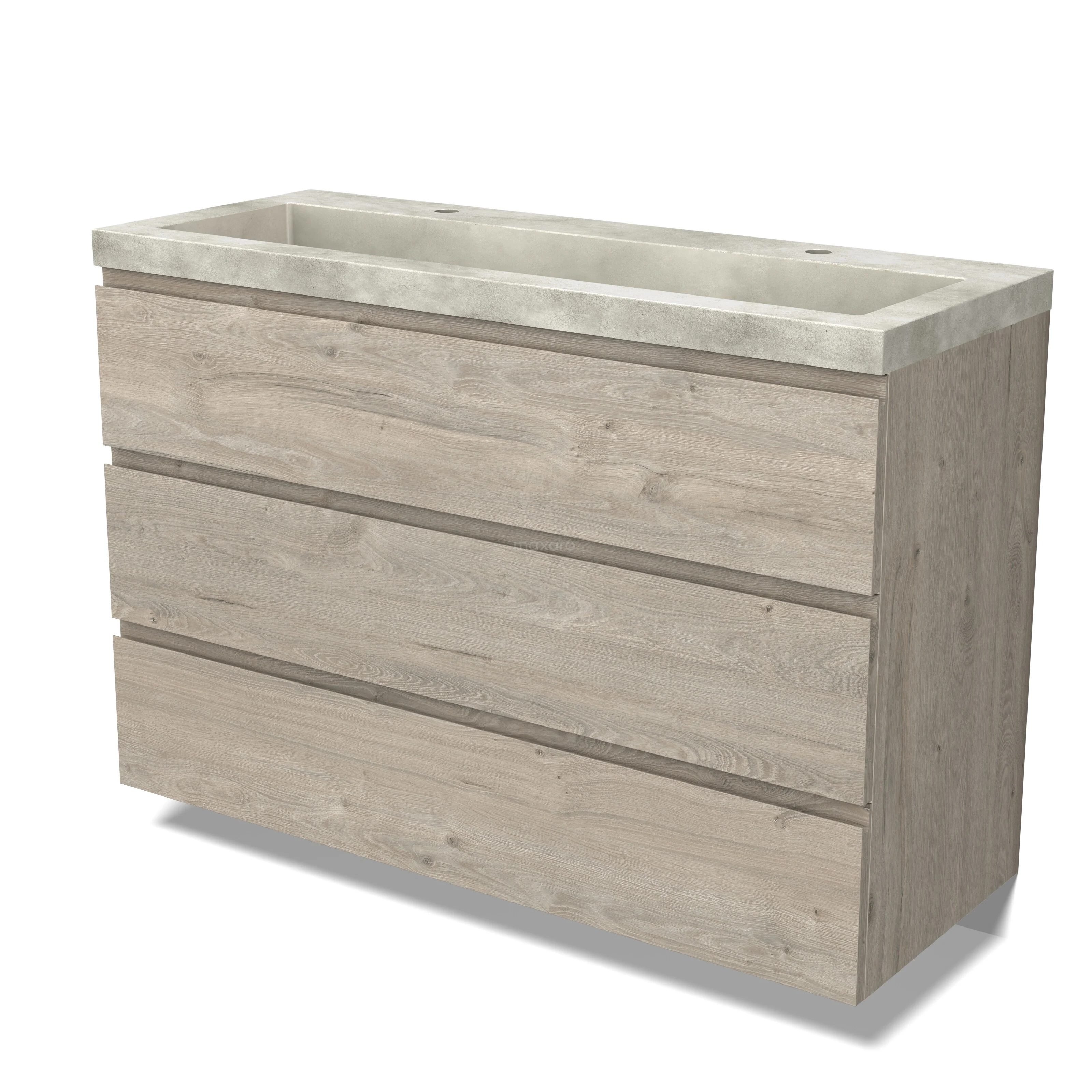 Modulo Waschtische | 120 cm Hellgraue Eiche Grifflos front Beton 3 Schubladen