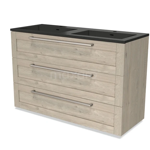 Modulo Waschtische | 120 cm Hellgraue Eiche Rahmen front Quarz 3 Schubladen
