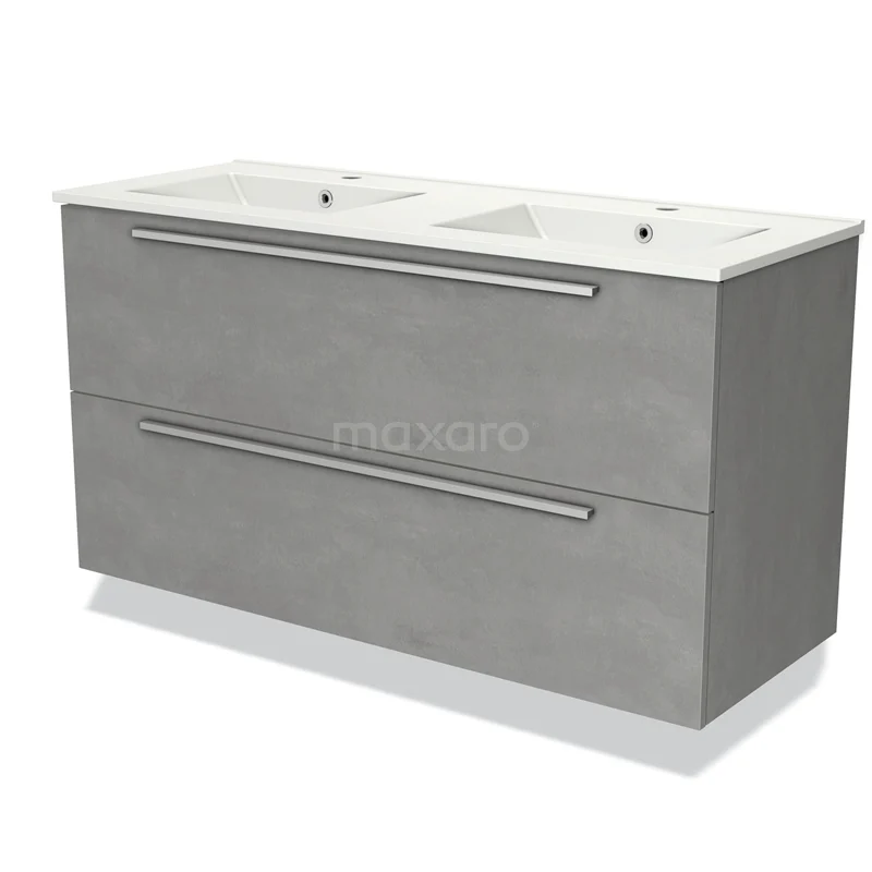 Modulo Waschtische | 120 cm Hellgrauer Beton Flach front Keramik 2 übereinanderliegende Schubladen