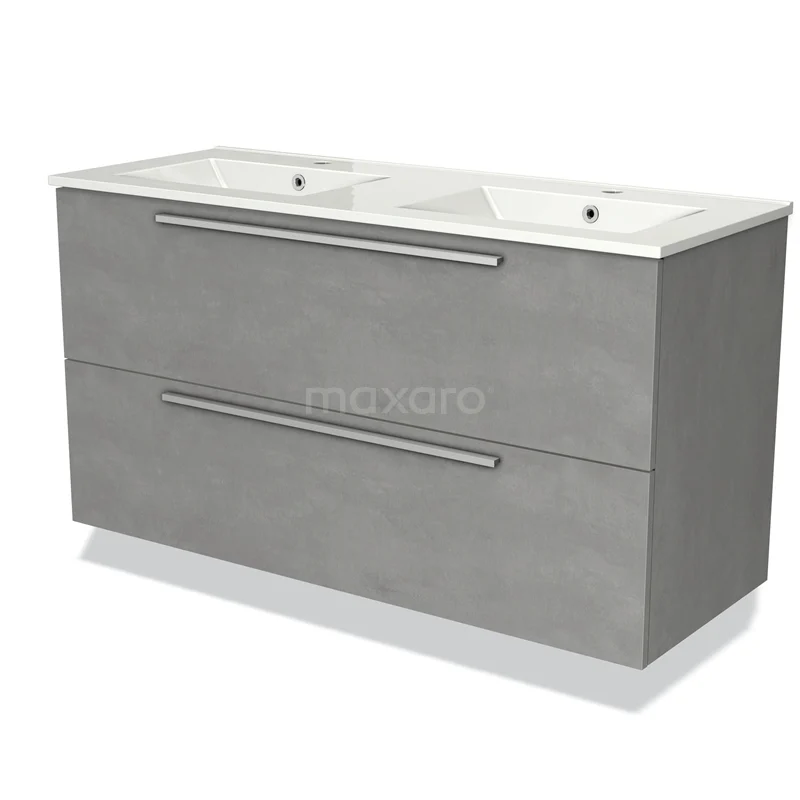 Modulo Waschtische | 120 cm Hellgrauer Beton Flach front Keramik 2 übereinanderliegende Schubladen