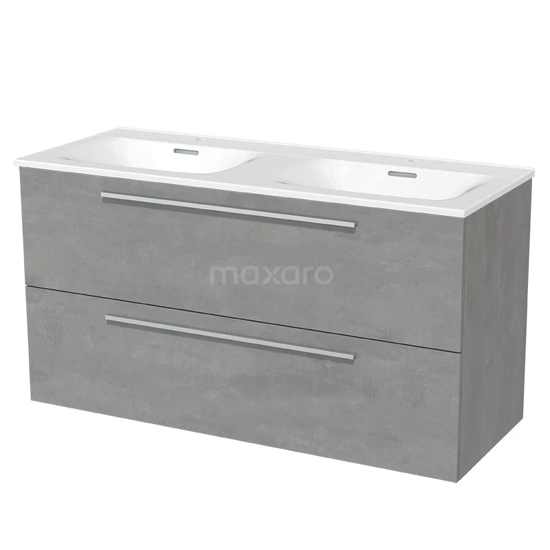 Modulo Waschtische | 120 cm Hellgrauer Beton Flach front Keramik 2 übereinanderliegende Schubladen