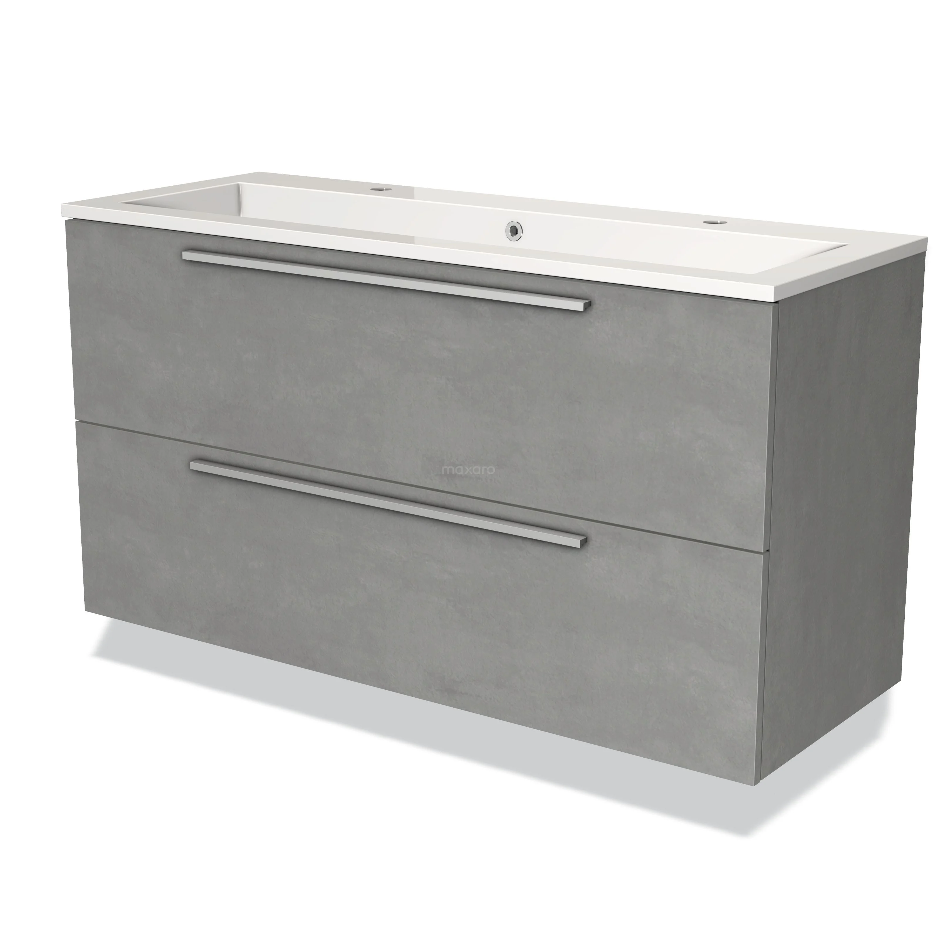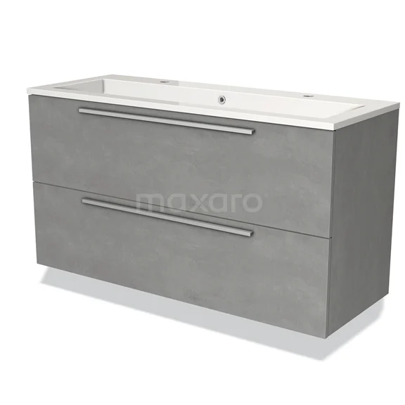 Modulo Waschtische | 120 cm Hellgrauer Beton Flach front Mineralguss 2 übereinanderliegende Schubladen