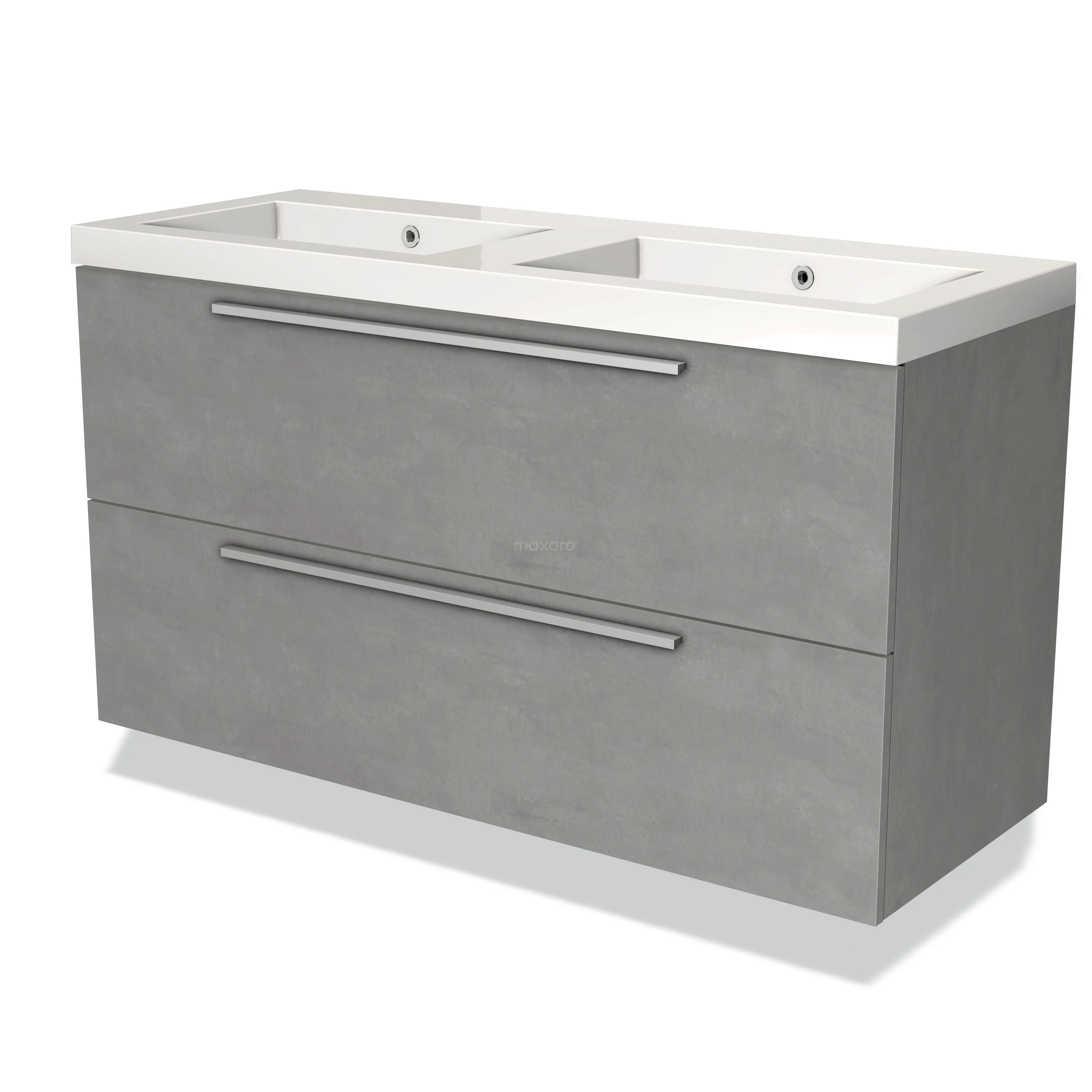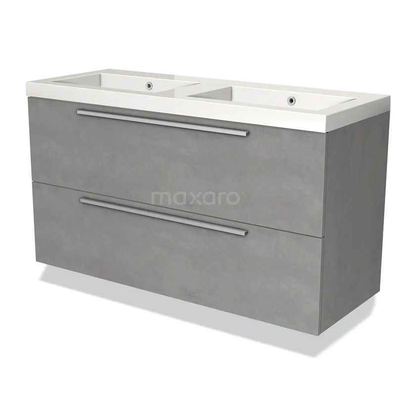 Modulo Waschtische | 120 cm Hellgrauer Beton Flach front Mineralguss 2 übereinanderliegende Schubladen