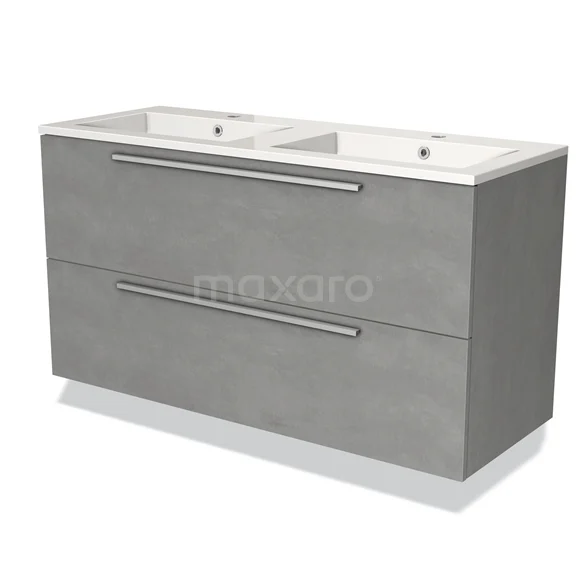 Modulo Waschtische | 120 cm Hellgrauer Beton Flach front Mineralguss 2 übereinanderliegende Schubladen