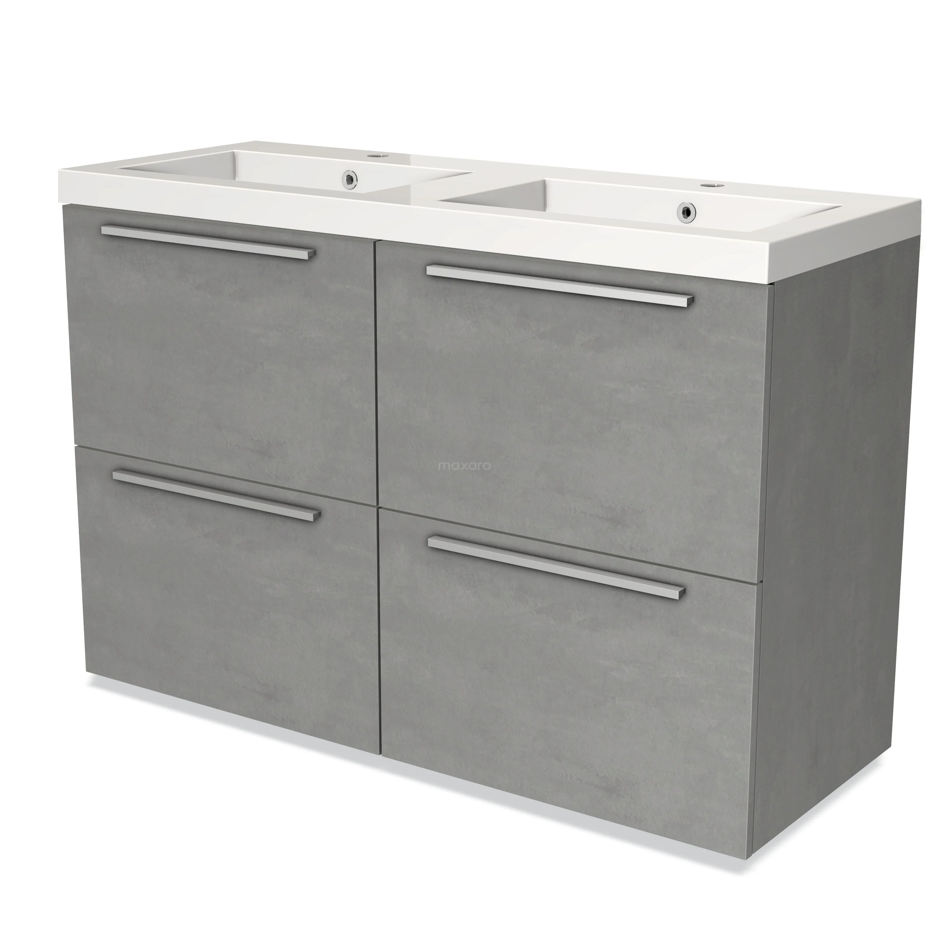 Modulo Waschtische | 120 cm Hellgrauer Beton Flach front Mineralguss 4 hohe Schubladen