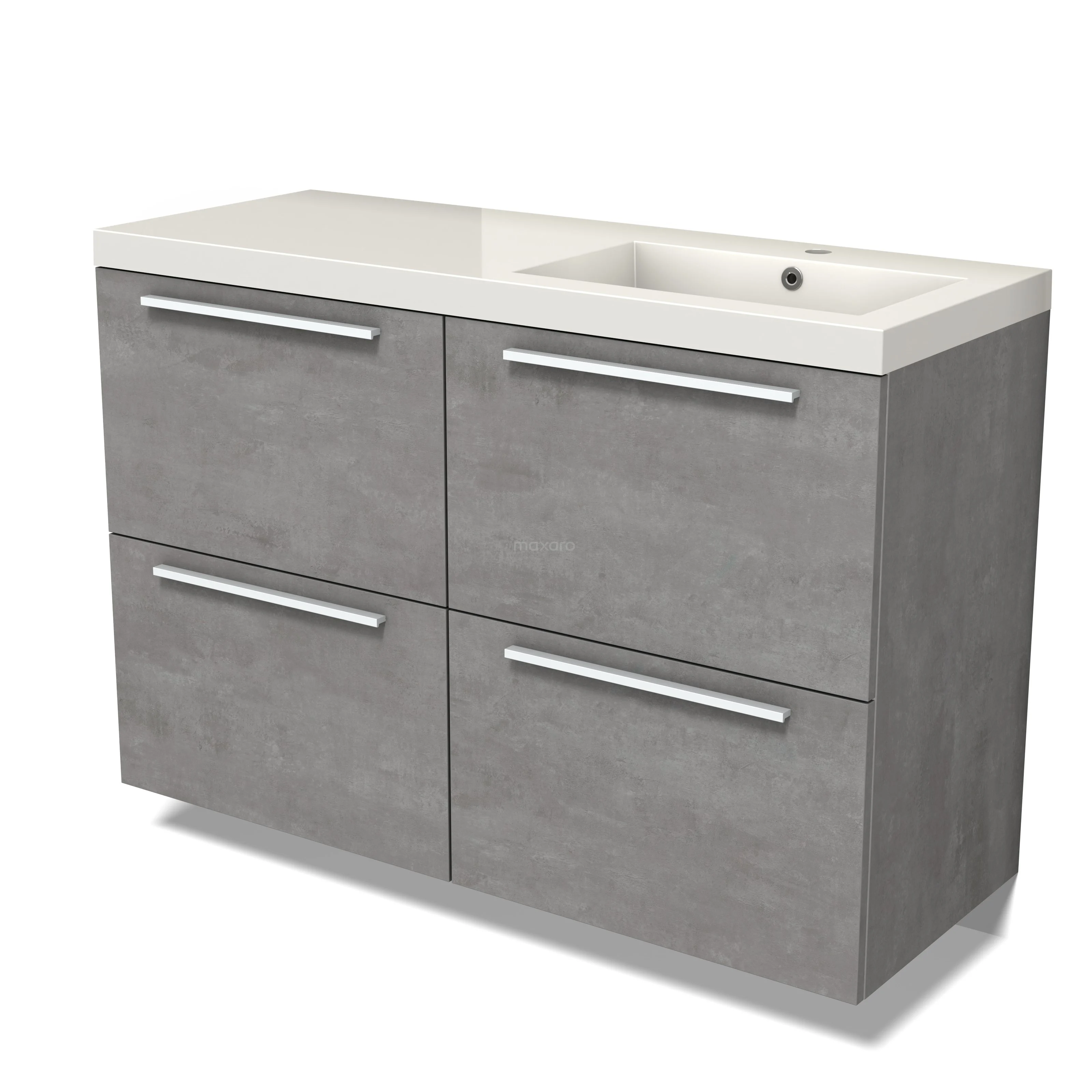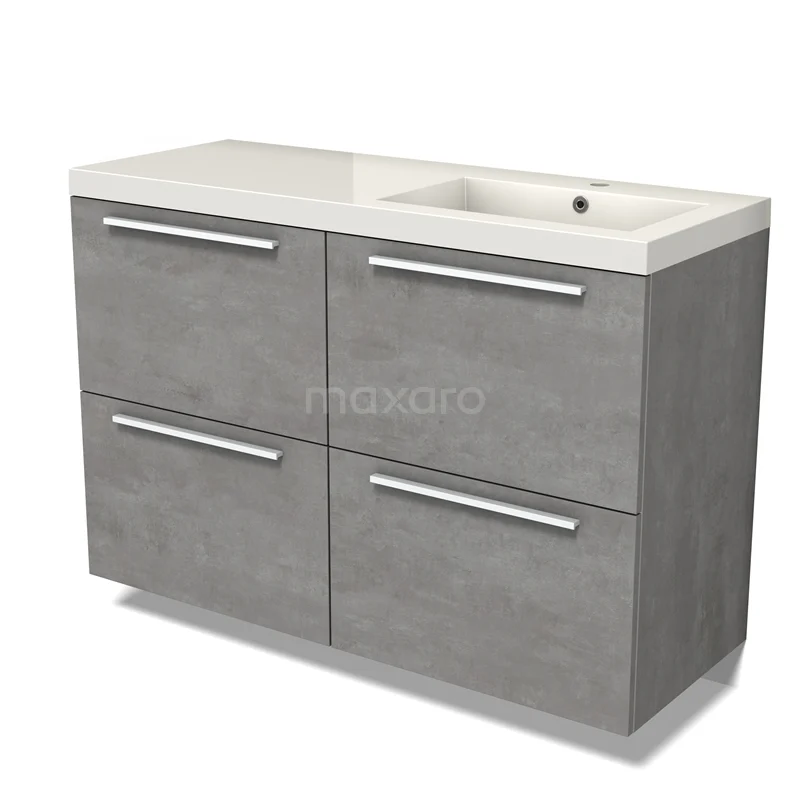 Modulo Waschtische | 120 cm Hellgrauer Beton Flach front Mineralguss 4 hohe Schubladen
