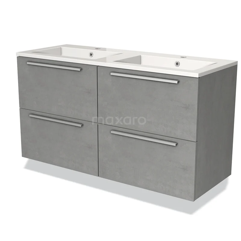 Modulo Waschtische | 120 cm Hellgrauer Beton Flach front Mineralguss 4 Schubladen