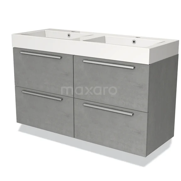 Modulo Waschtische | 120 cm Hellgrauer Beton Flach front Mineralguss 4 Schubladen