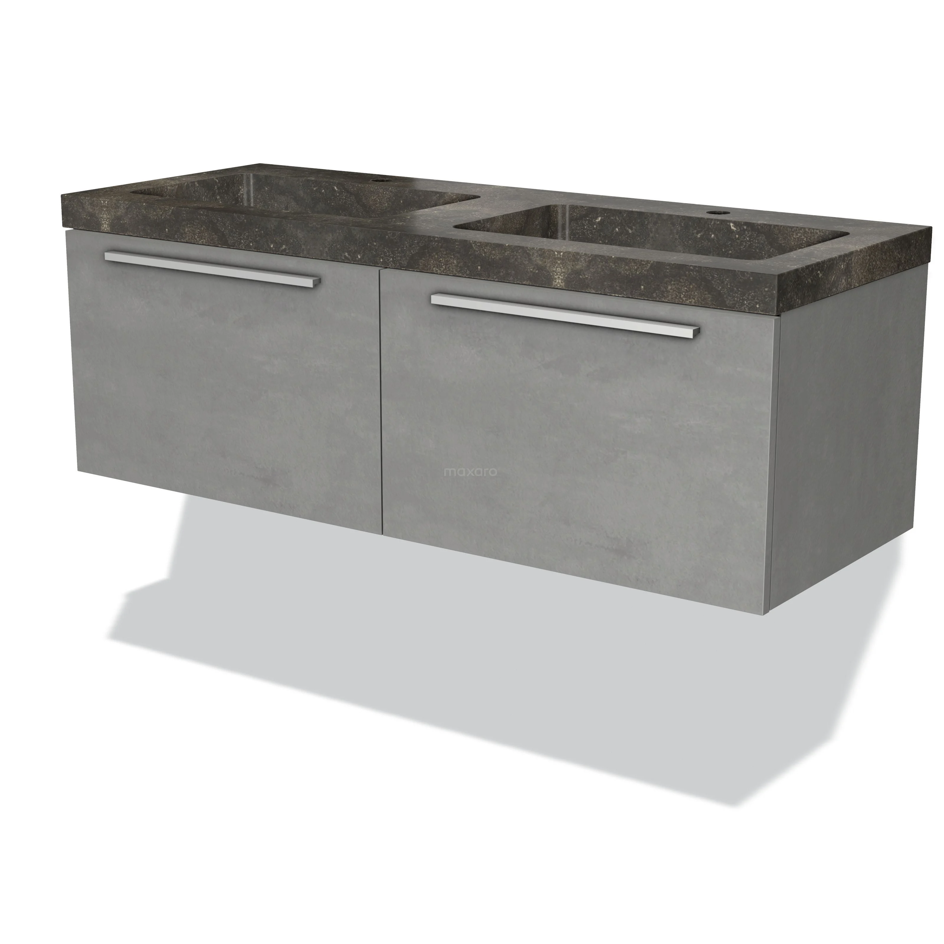 Modulo Waschtische | 120 cm Hellgrauer Beton Flach front Naturstein 2 nebeneinanderliegende Schubladen