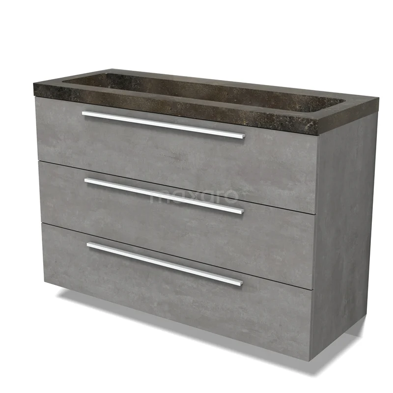 Modulo Waschtische | 120 cm Hellgrauer Beton Flach front Naturstein 3 Schubladen