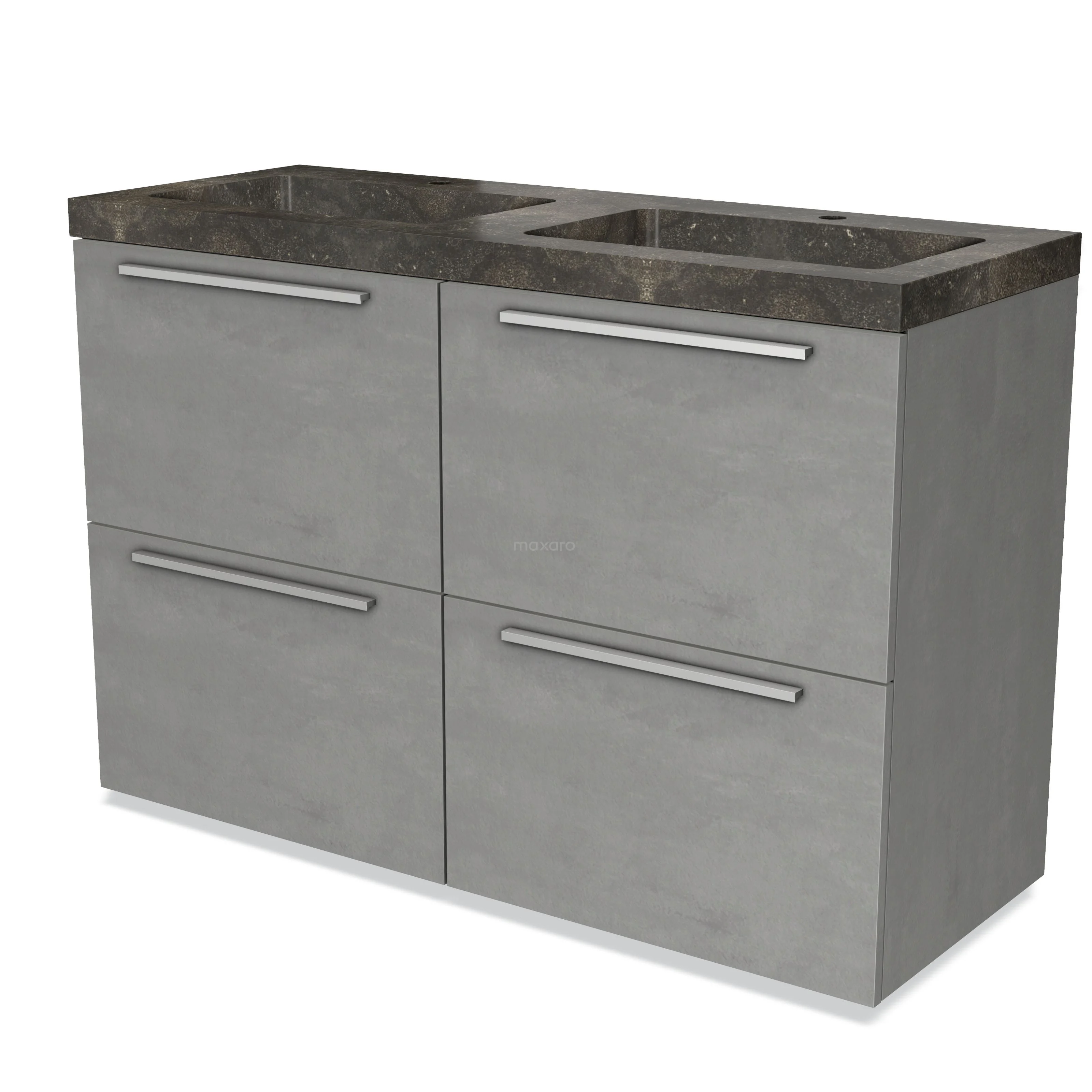 Modulo Waschtische | 120 cm Hellgrauer Beton Flach front Naturstein 4 hohe Schubladen